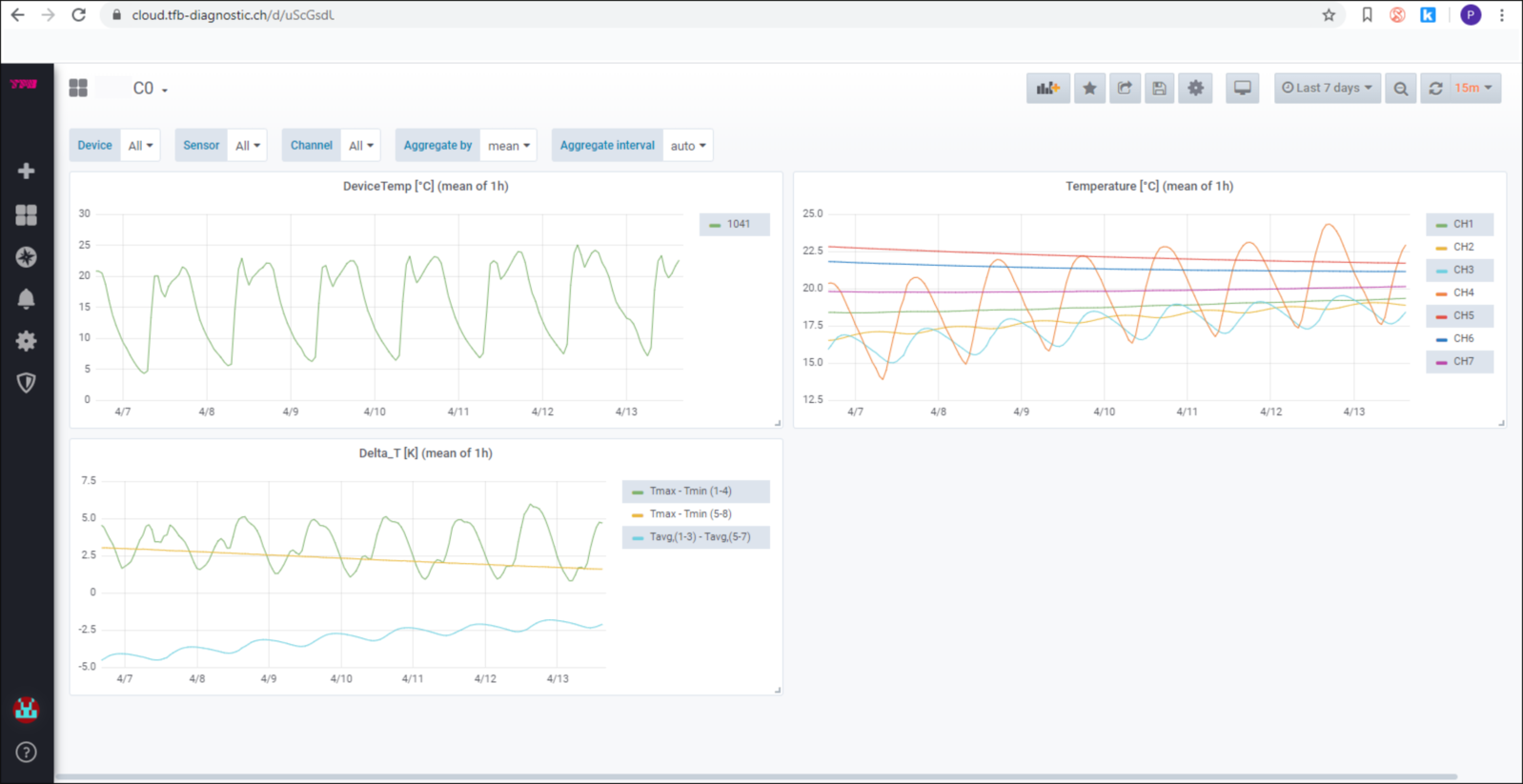DS-Cloud is a full-fledged, cloud-based data visualization and storage system. Based on a time-series database, it allows for customized data visualization and post-processing in real-time. The data can be accessed anytime with a standard web browser (desktop and mobile). An alerting functionality makes it possible to send alerts when a predefined threshold value is reached.